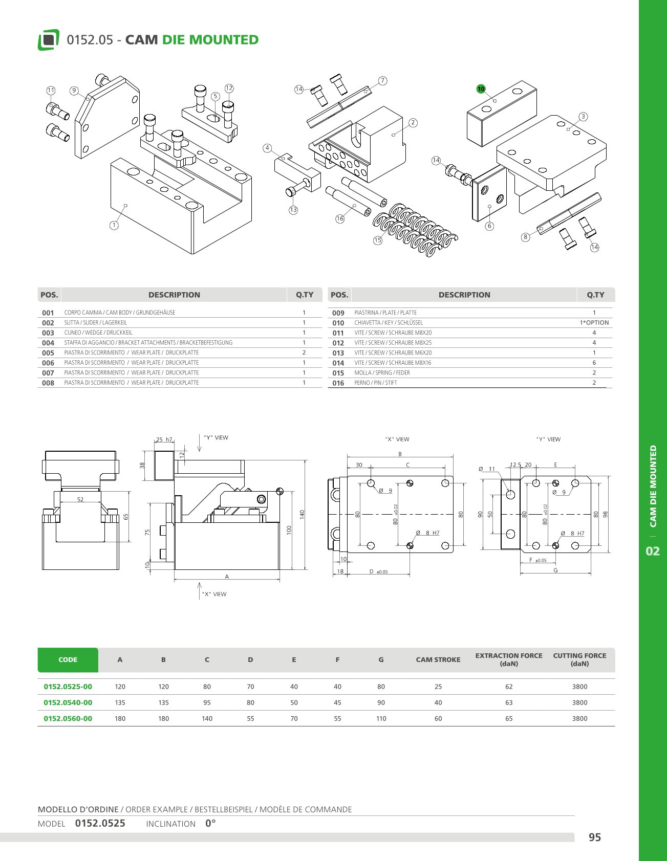 This cam can be fitted horizontally or inclined from 0° to 20°. Means of application: generally suitable for shearing, drilling and bending work.