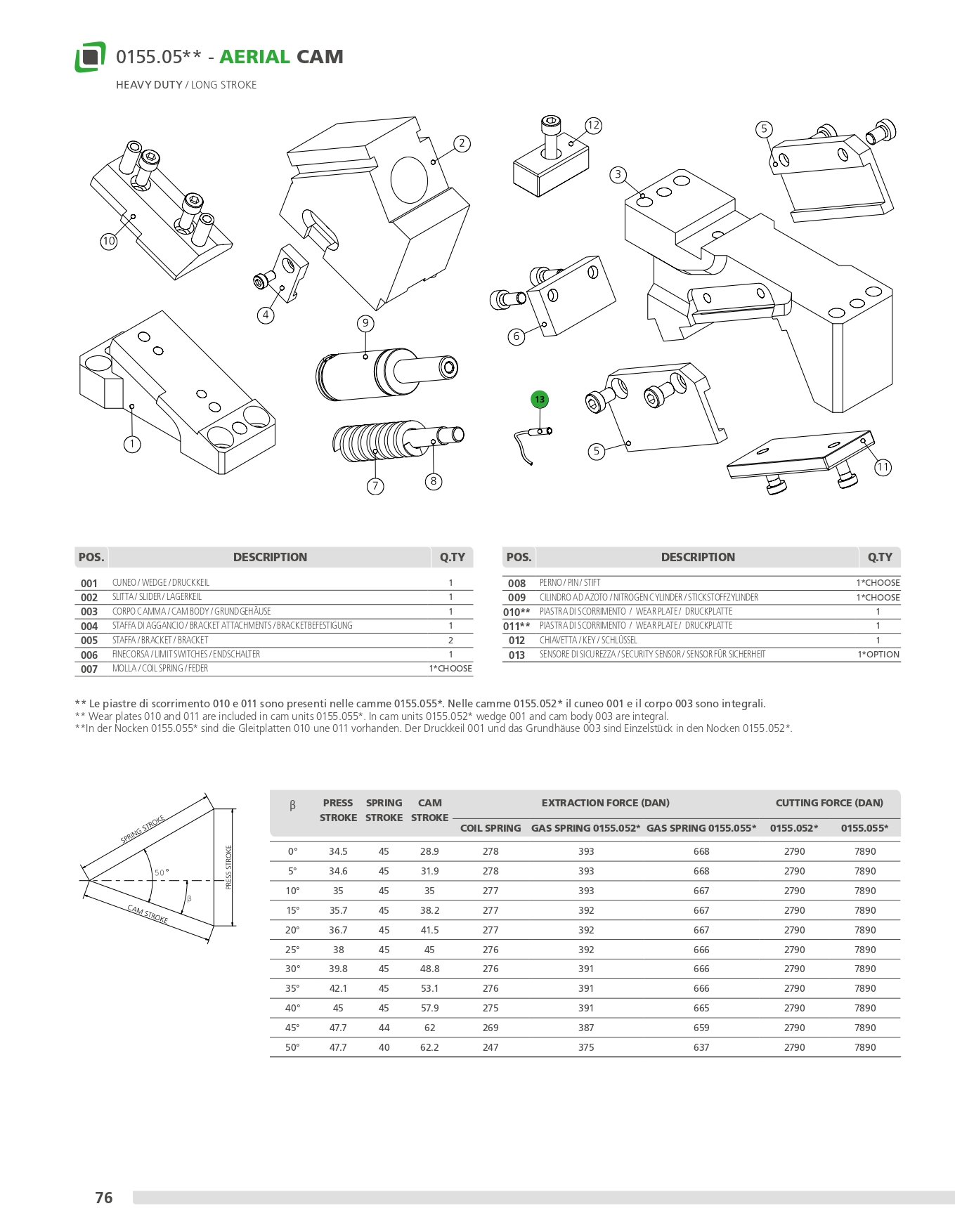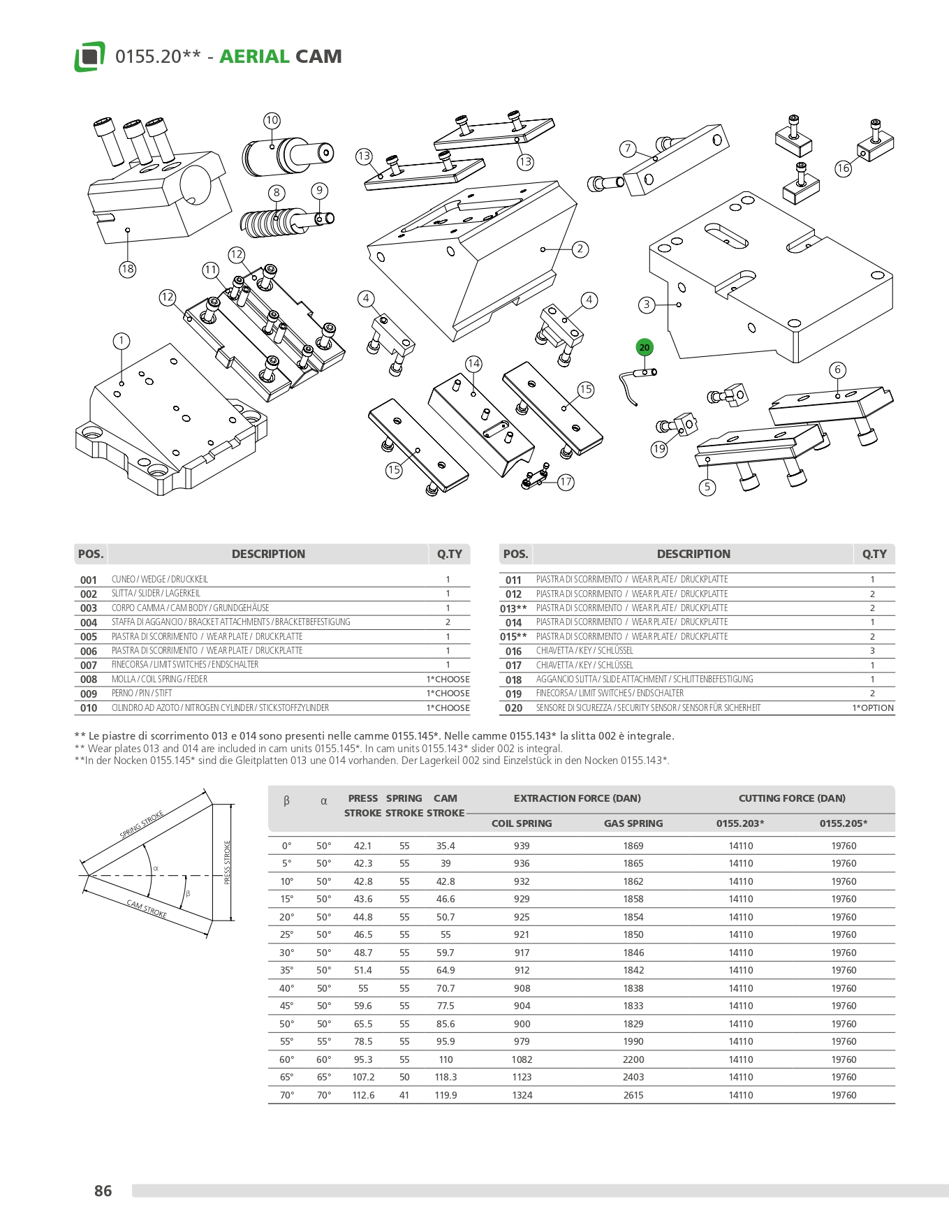An der Stanzeinheit können je nach Bedarf Zubehör oder verschiedene Stahlsorten angebracht werden. Diese Nocke kann waagerecht oder von 0° bis 80° geneigt montiert werden.