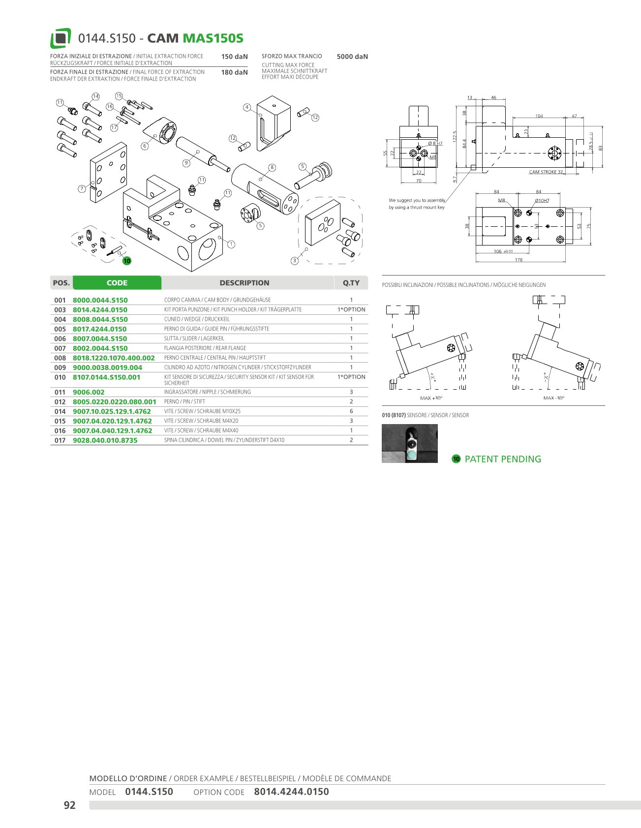 geneigt montiert werden. Mögliche Anwendungen: Stanzen, Biegen und Prägen.
