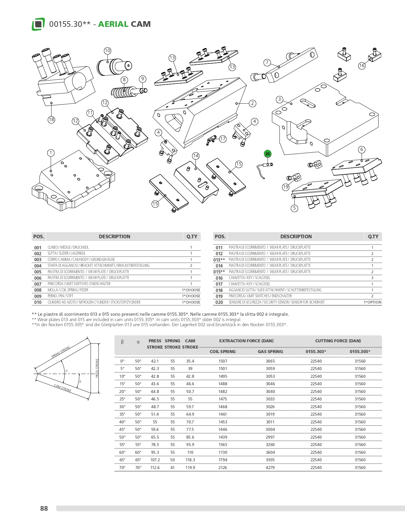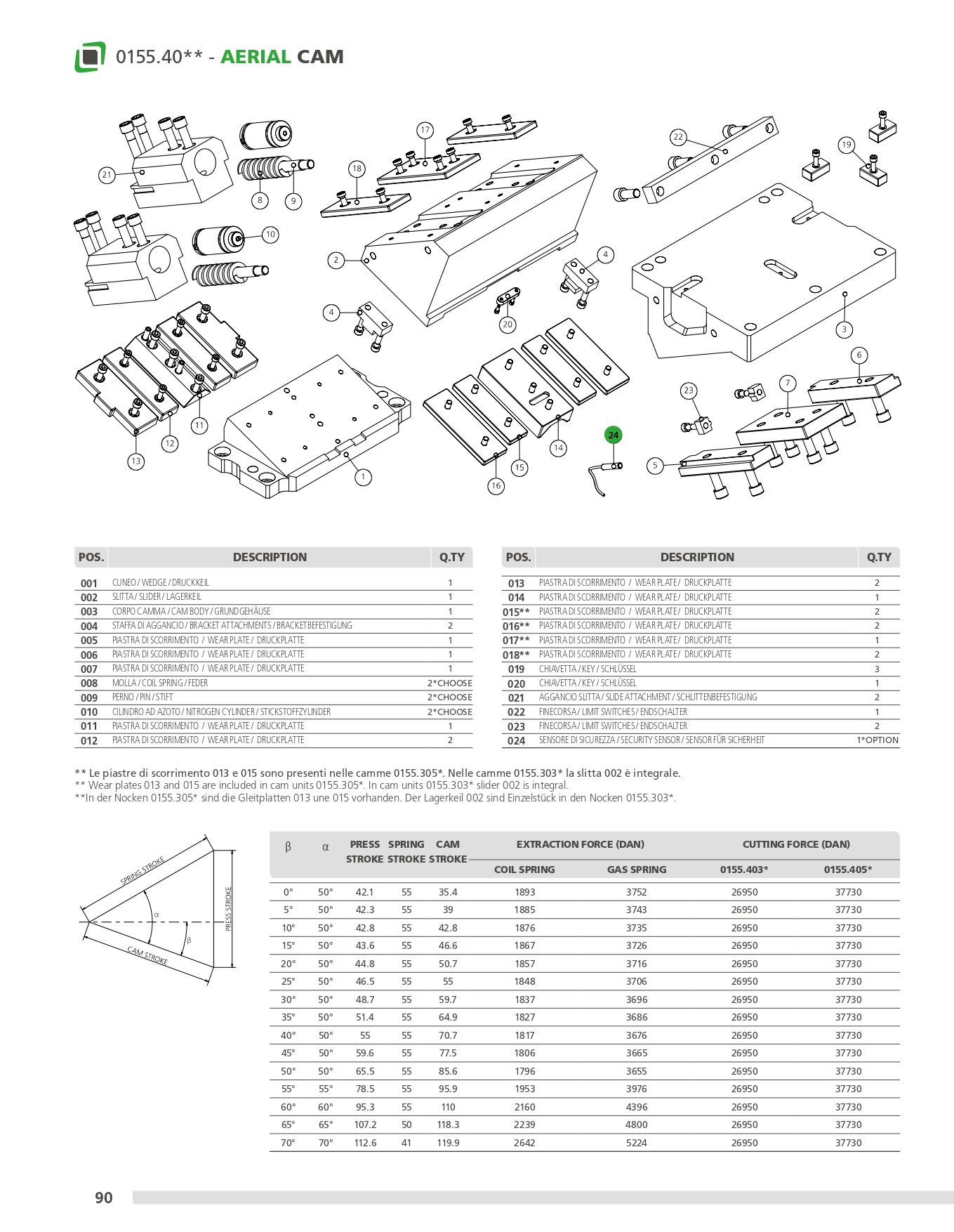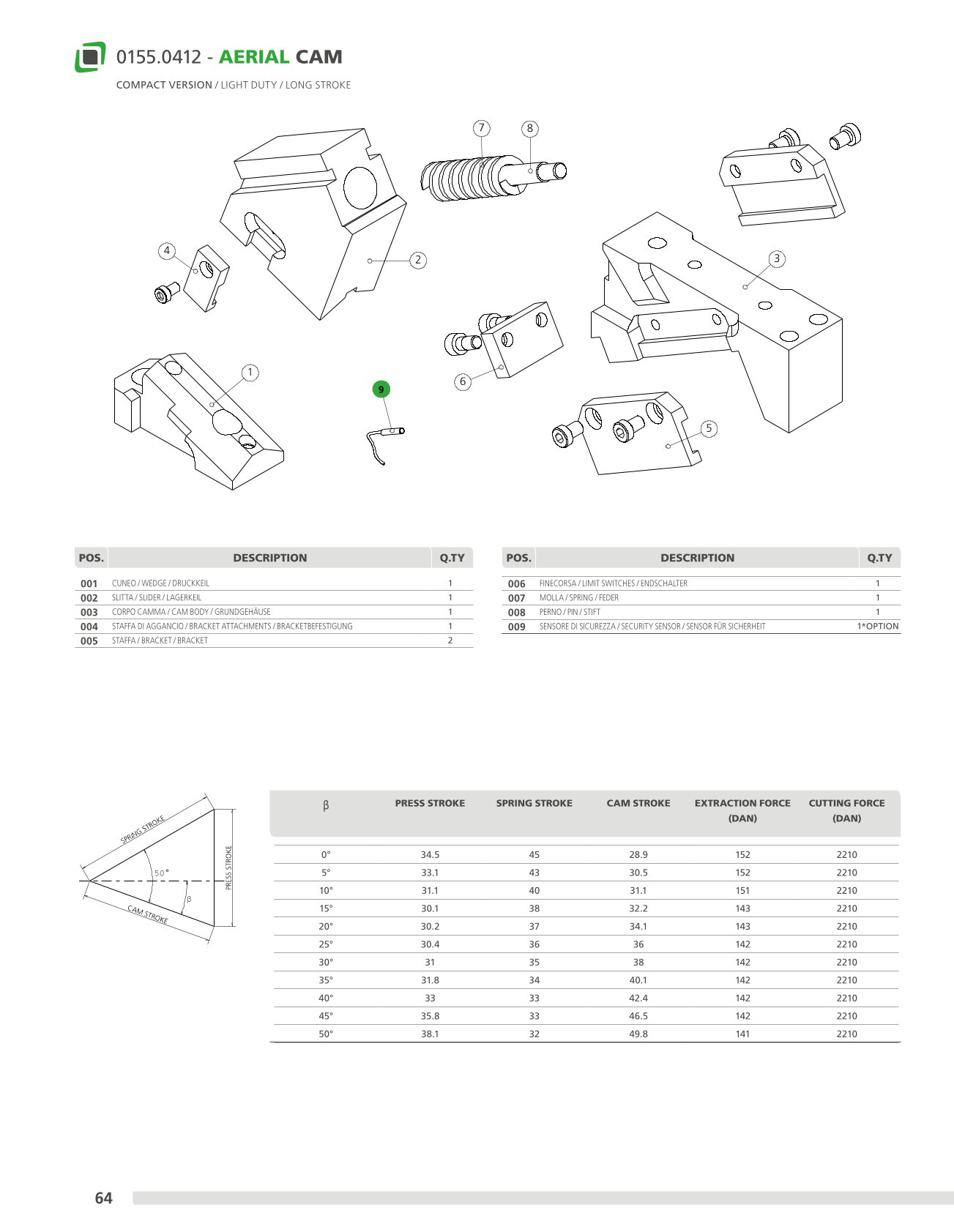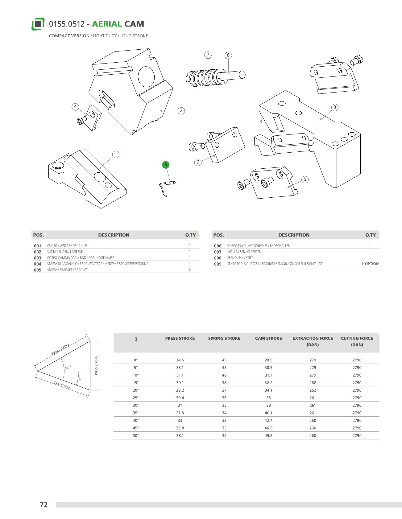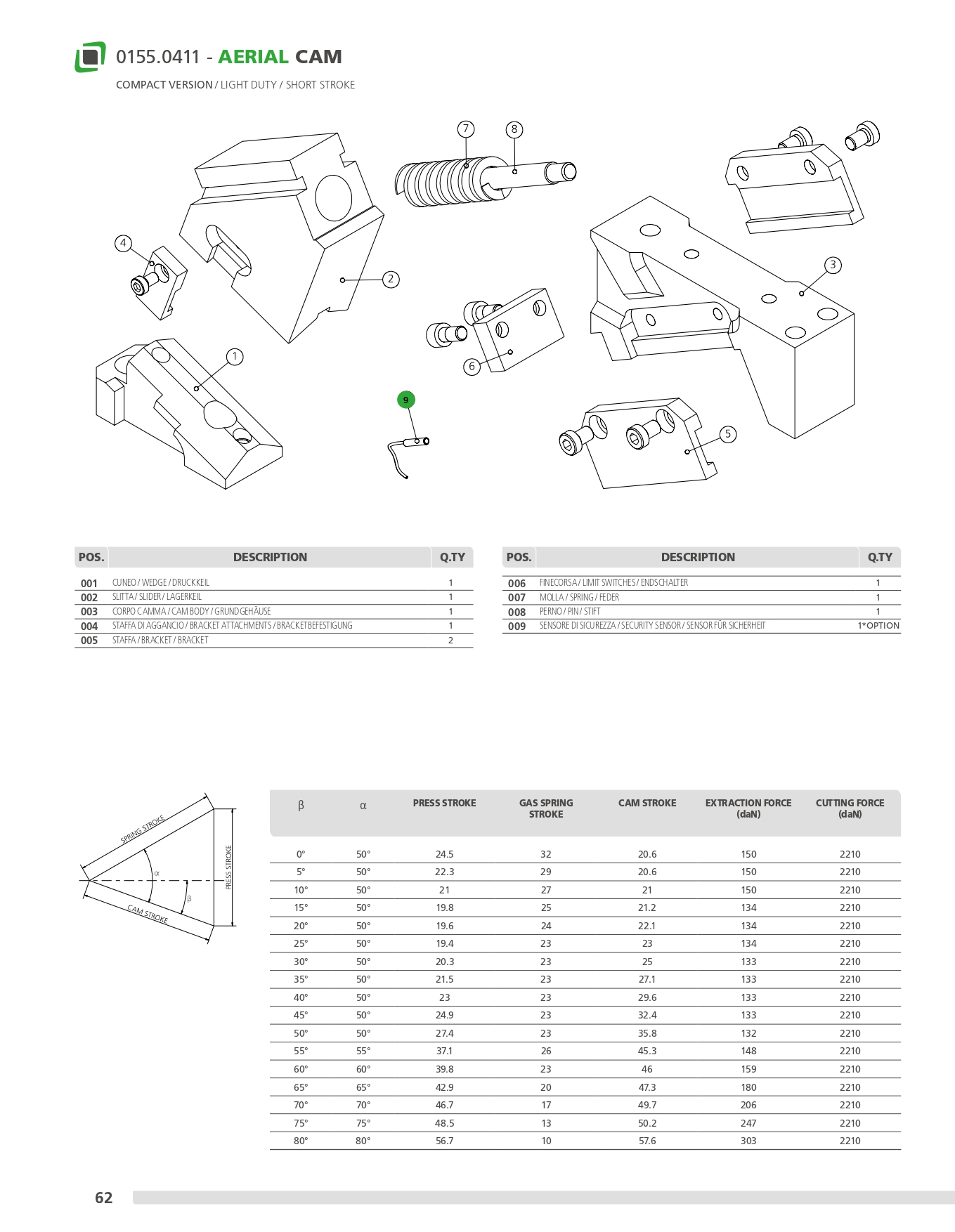 This cam can be fitted horizontally or inclined from 0° to 80°. Means of application: generally suitable for shearing, drilling and bending work.
