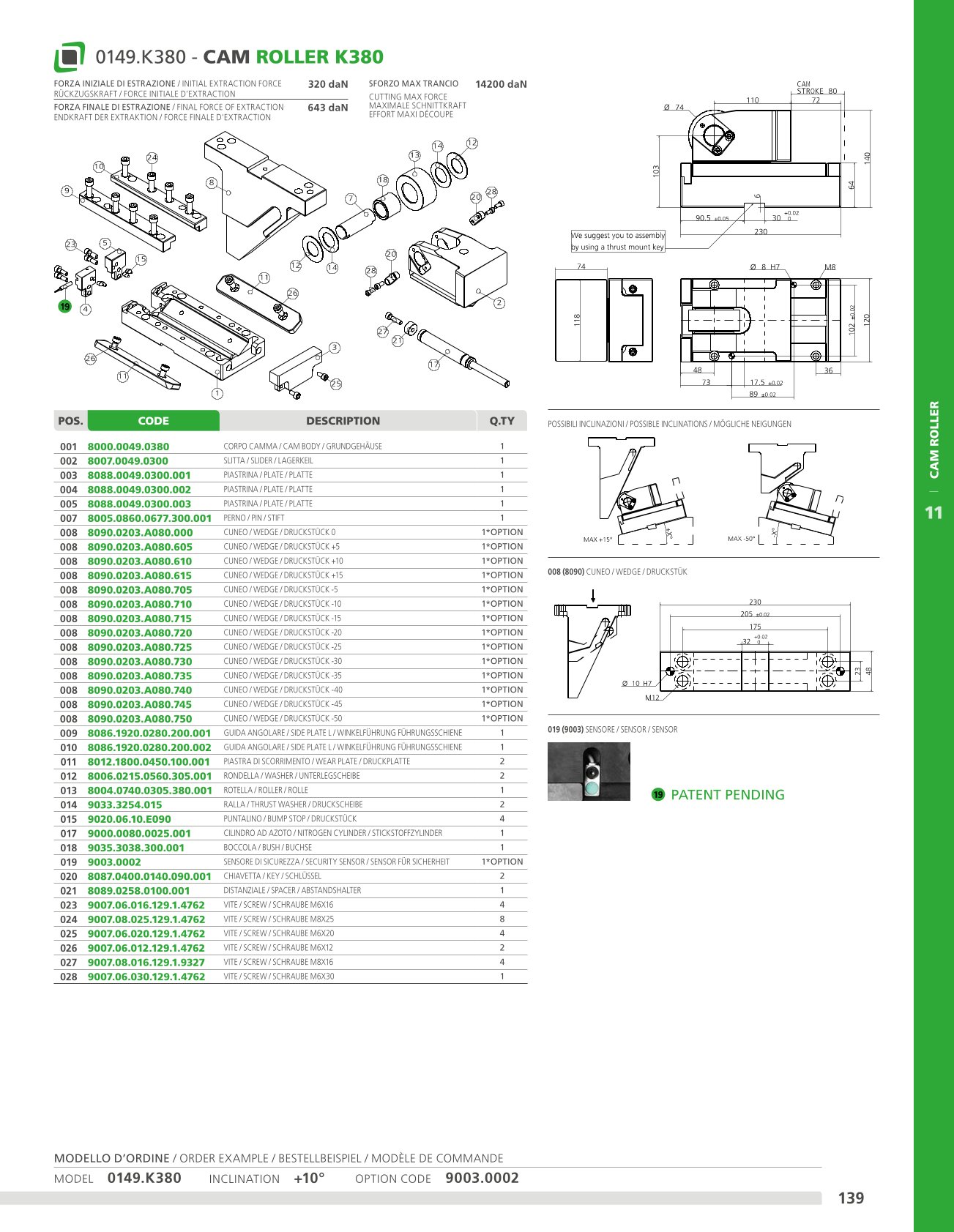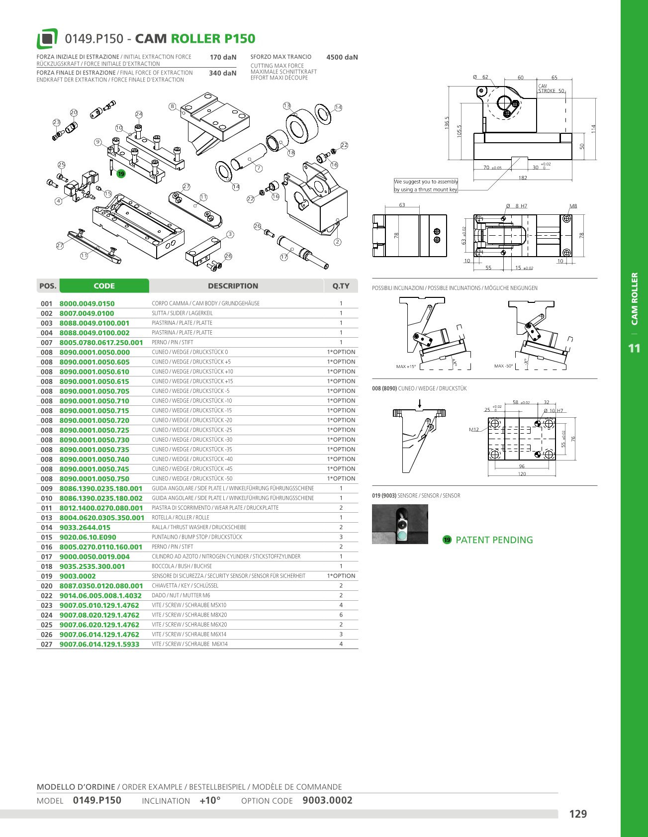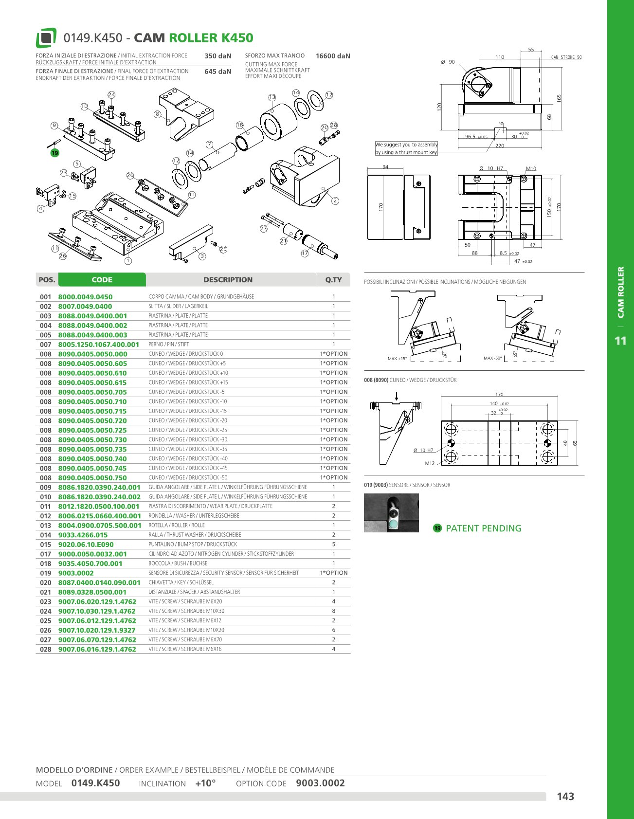 This cam has a long stroke and can be fitted horizontally or inclined. Means of application: generally suitable for shearing, drilling and bending work.
