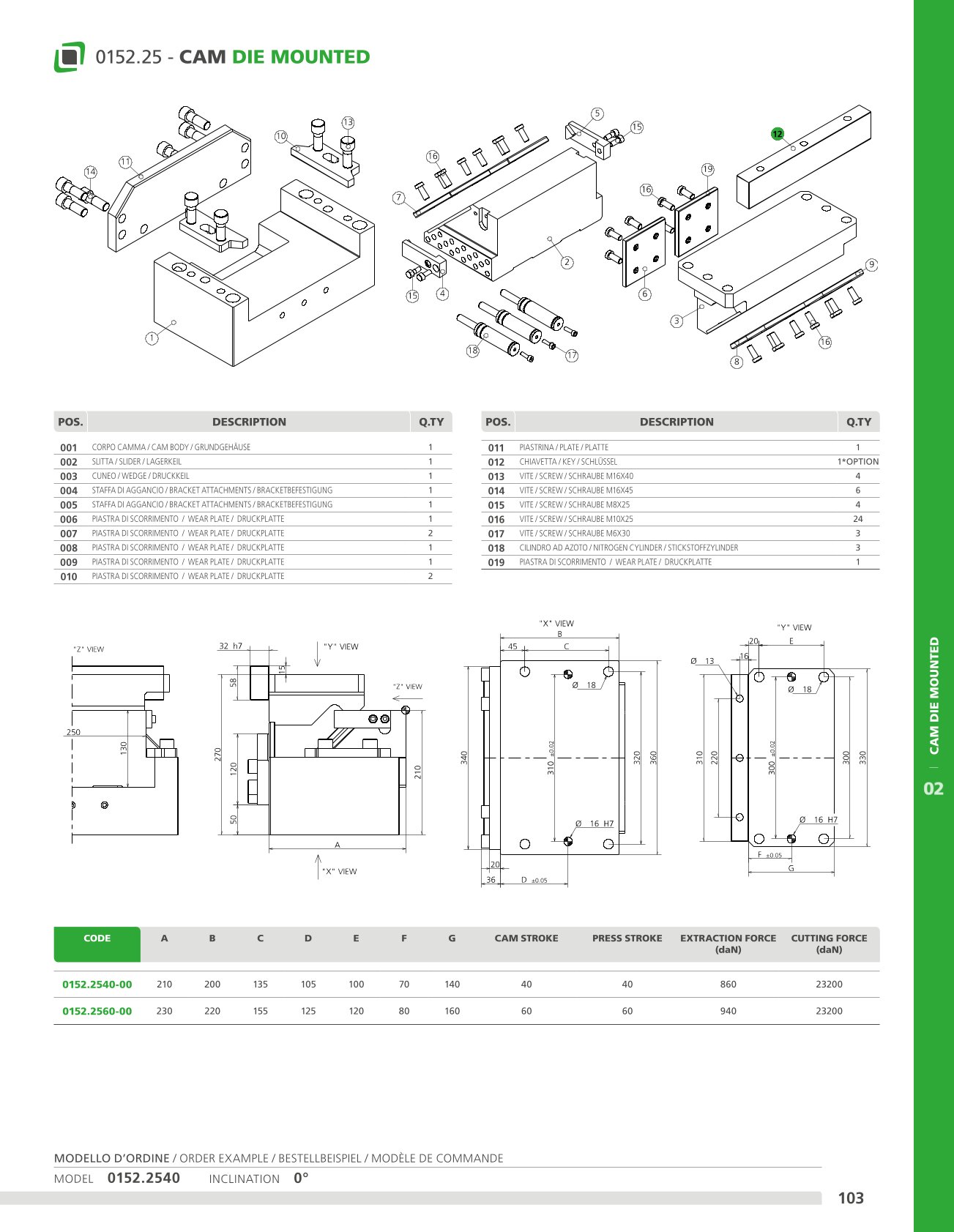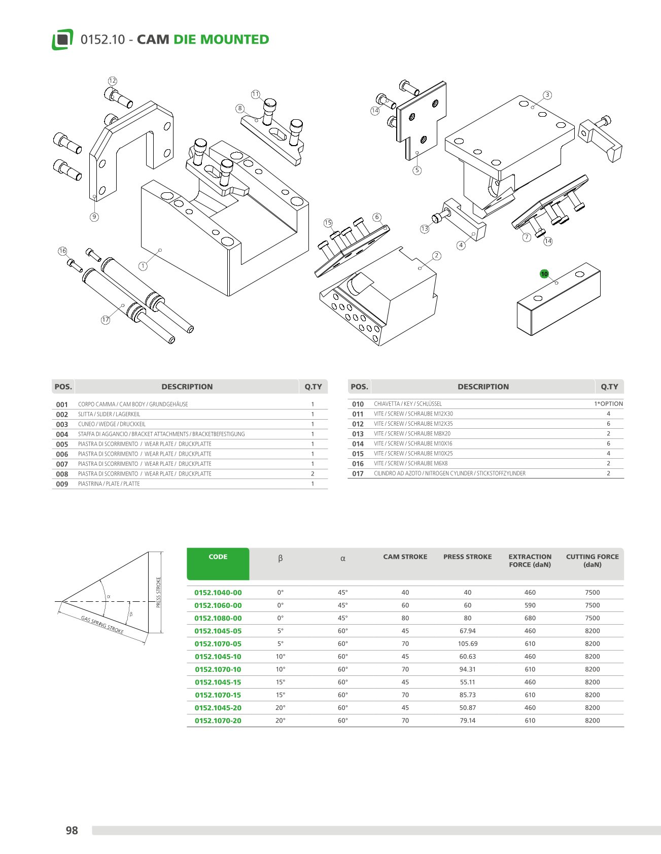 This cam can be fitted horizontally or inclined from 0° to 20°. Means of application: generally suitable for shearing, drilling and bending work.