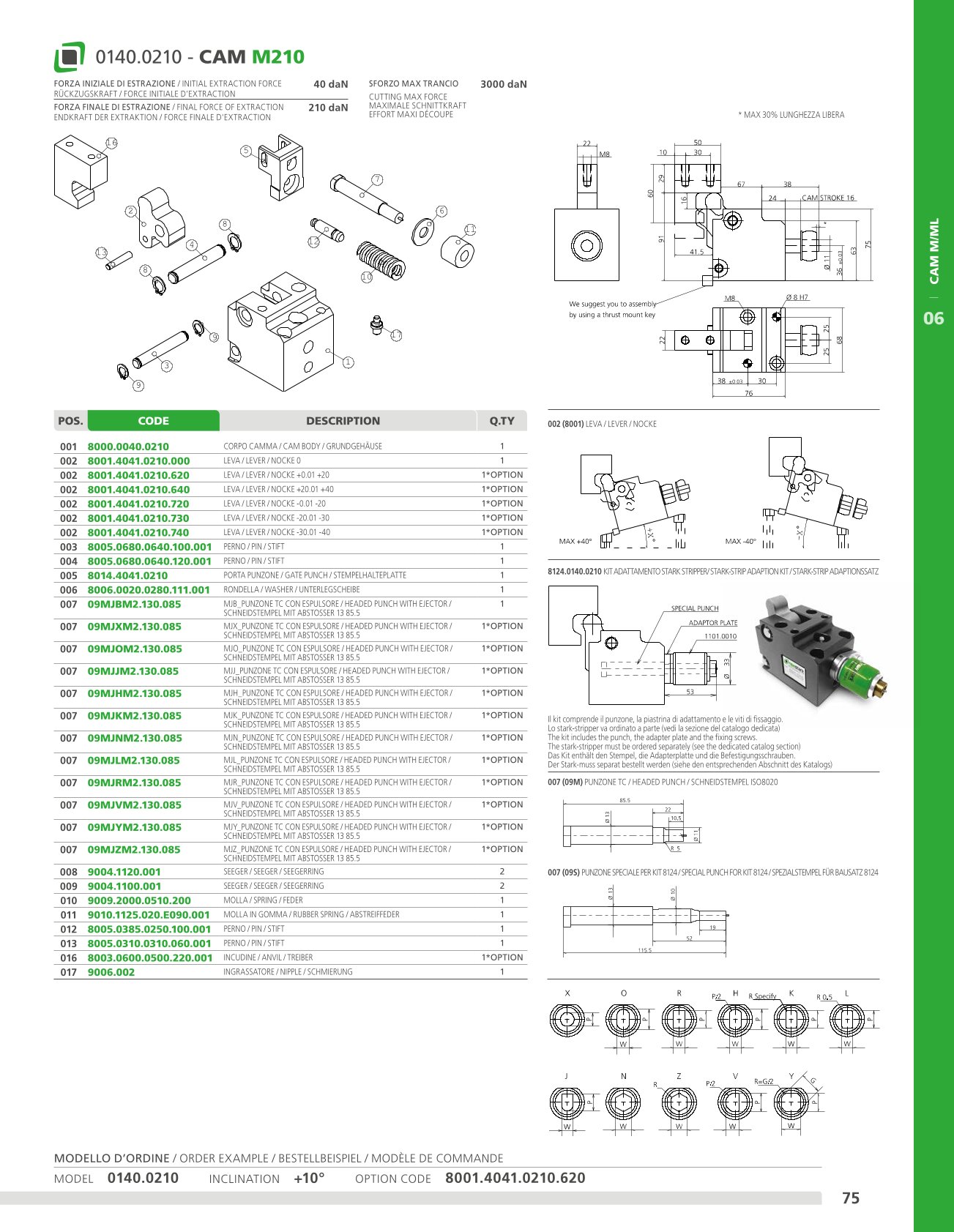 Unidad de punzonado de hasta 5000 daN, con punzón standard ISO 8020 y retorno con muelle de acero. Modelo M para largos normales y ML