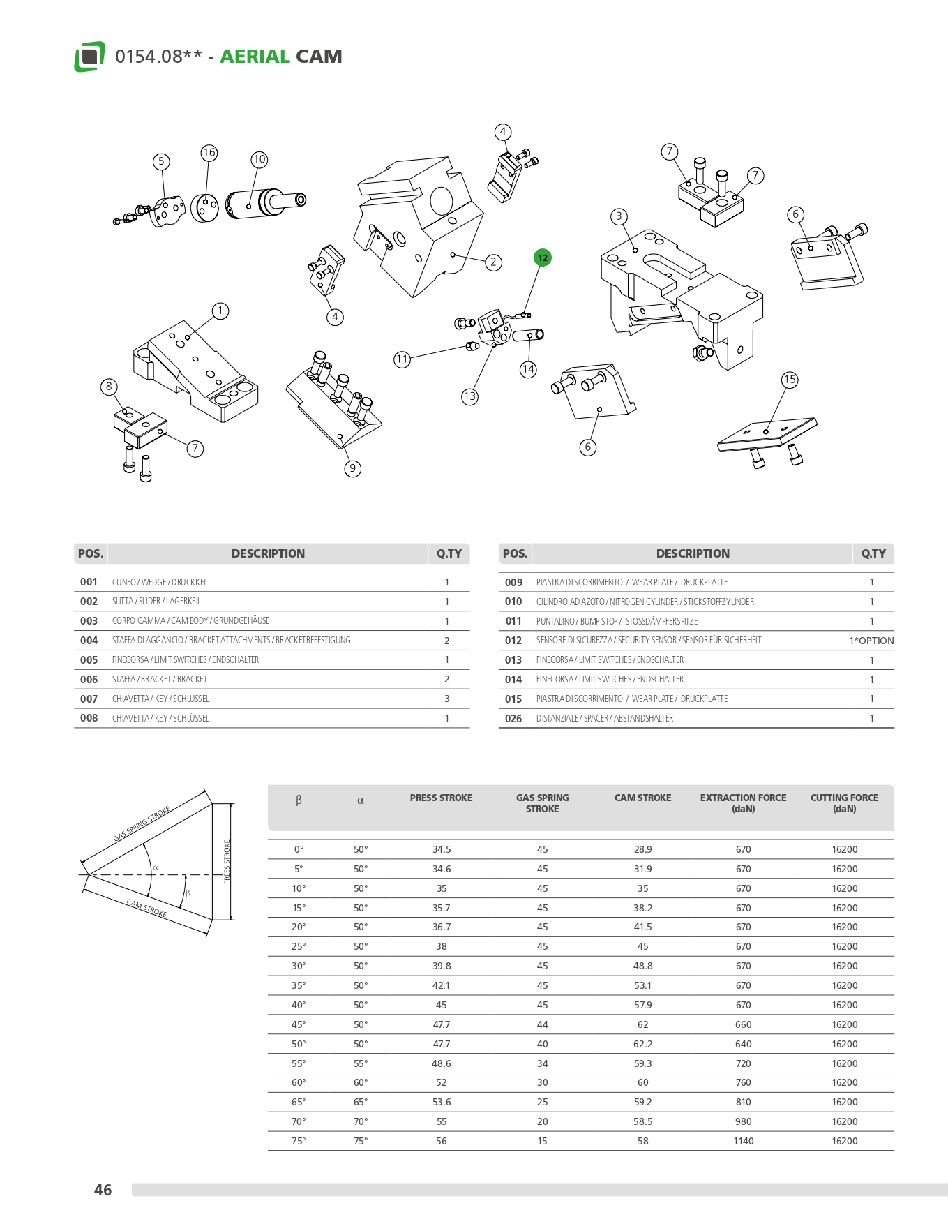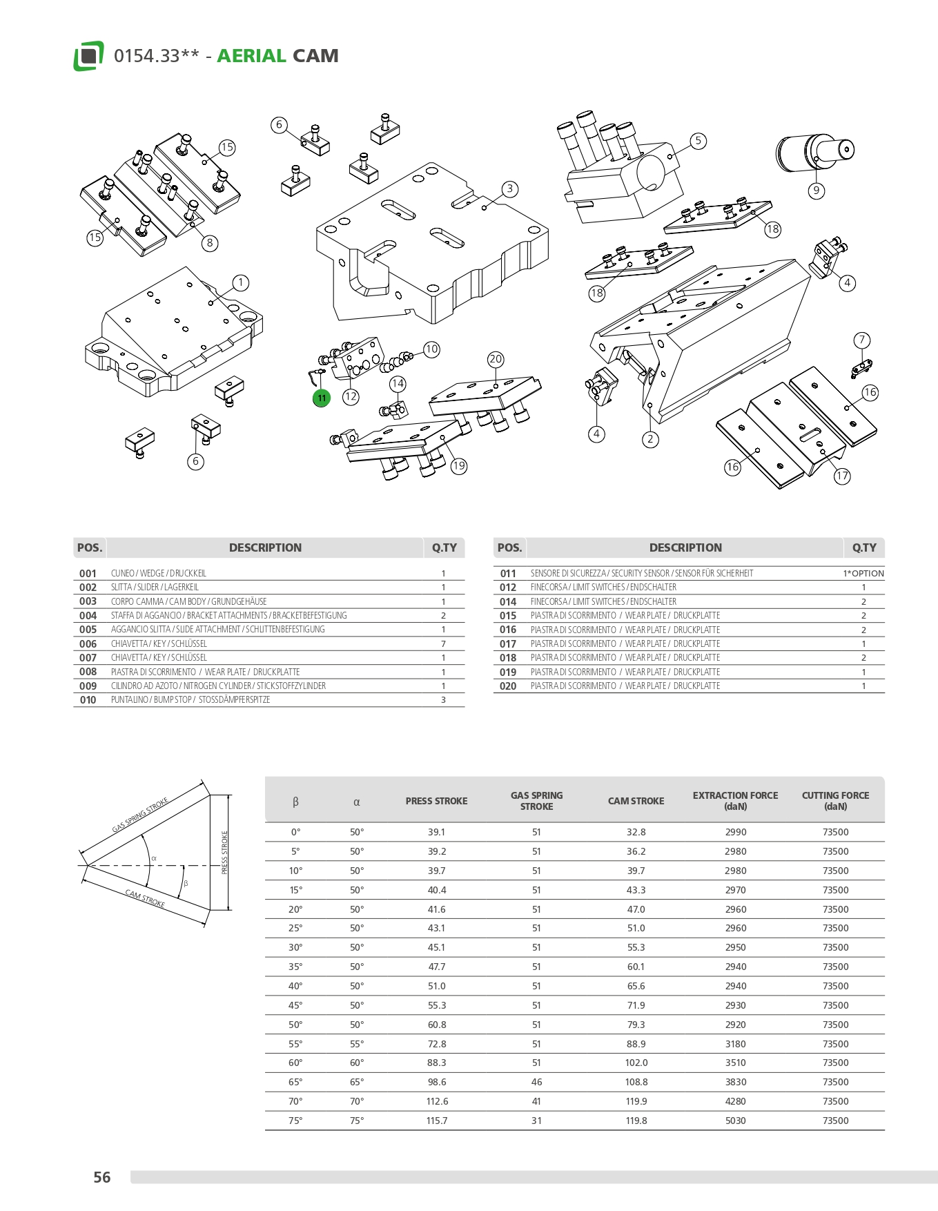 Came mécanique d’une puissance allant jusqu’à 88200 daN avec retour garanti au moyen de vérins à azote, sur lequel sont appliqués les accessoires ou les aciers pour réaliser les usinages souhaités. Cette came peut être montée en position horizontale ou inclinée de 0° à 75°. Applications possibles: convient pour les travaux de découpage, de perçage et de pliage. Interchangeable VDI.