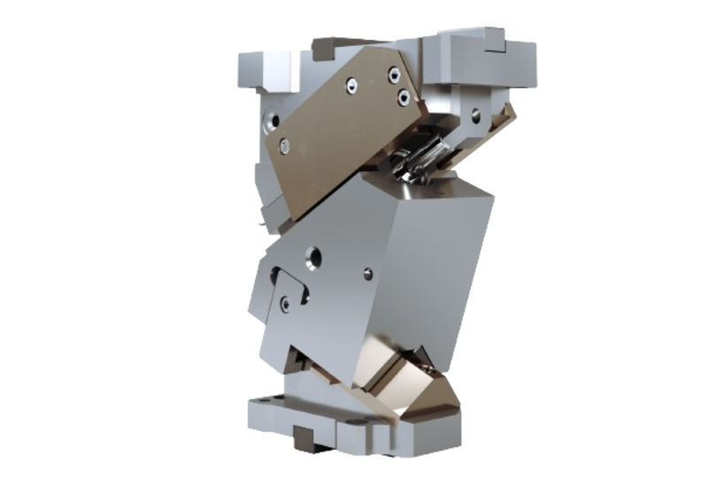Cam meccanica di potenza fino a 88200 daN con ritorno garantito mediante cilindri ad azoto, su cui vengono applicati gli accessori o gli acciai per eseguire le lavorazioni desiderate. Questa cam può essere montata in posizione orizzontale o inclinata da 0° a 75°.