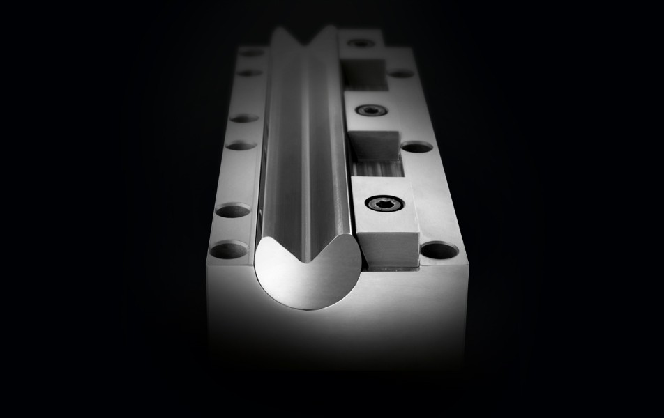 Accessorio che permette di eseguire la piegatura e calibratura in contemporanea della lamiera o acciaio. Permette inoltre di eseguire svariati tipi di piegature quali piega in sottosquadra (con angolazioni inferiori ai 90°), aperta (superiori ai 90°), ad ampio raggio mantenendo la tolleranza richiesta nell’angolazione. Esegue inoltre pieghe a “Z” aperte, doppia piega, ecc. Il sistema è composto da un rotante precedentemente sagomato a seconda delle applicazioni desiderate. Il prodotto è costruito con materiali molto tenaci e resistenti all’usura e compressione, temprati e trattati in superficie in modo tale da diminuire considerevolmente gli attriti. Il prodotto è brevettato.